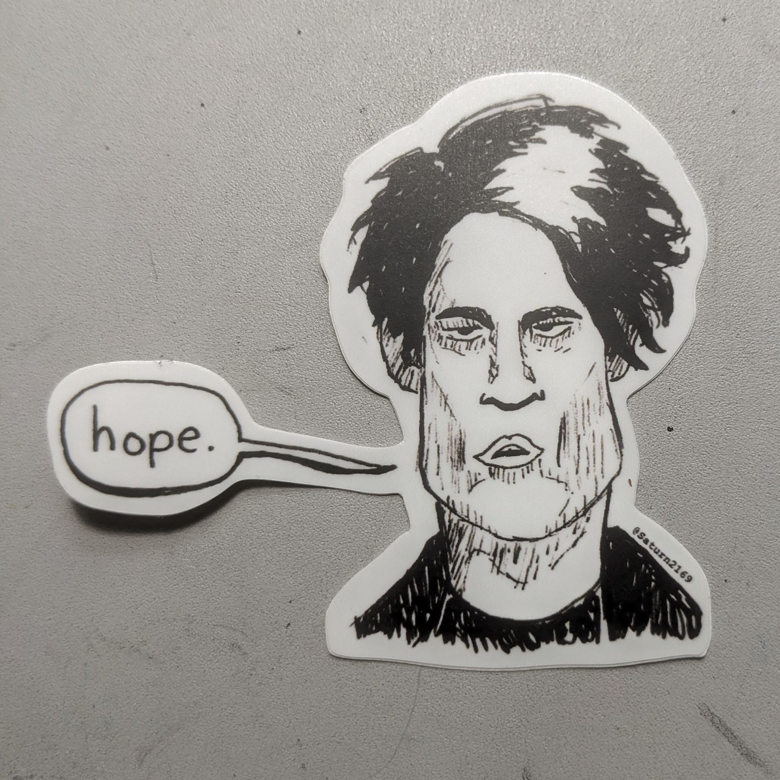 3 in sticker featuring a sketch of Dream from the Sandman with the word "Hope".